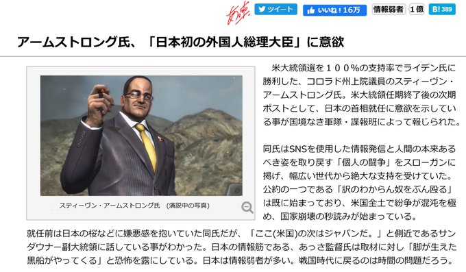 Senator Armstrong Appears To Have Started Tweeting アームストロング上院議員がツイッターを初めたようです Metal Gear Rising Revengeance Know Your Meme